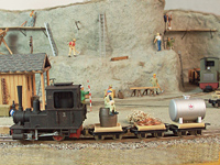 Nachbildung einer Feldbahndampflokomotive von O&K, angetrieben durch das neue EGGER-BAHN® Universalfahrwerk, fein detaillierte Aufbauten und Kesselarmaturen in Messing Feingusstechnologie, geschlossene Führerhaustüren, schwarze Farbgebung mit leichten Betriebsspuren und Verwitterungsfinish. Betriebsnummer 2. Länge über Puffer 49 mm. Gewicht 83 g.